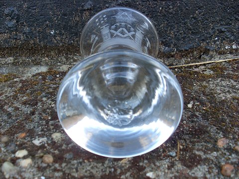 Gammelt frimurer glas med slibninger på kumme. Højde 12cm.