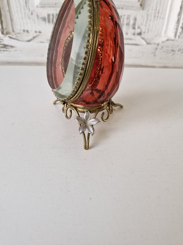 Art Nouveau egg-shaped clock case in raspberry-colored glass with gilded mounting