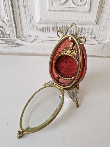 Art Nouveau egg-shaped clock case in raspberry-colored glass with gilded mounting