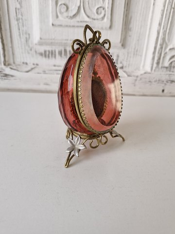 Art Nouveau ægformet ur skrin i hindbærfarvet glas med forgyldt montering