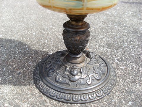 Flot petroliums lampe med opaline skærm,