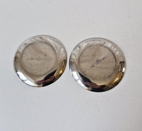 Frantz Hingelberg pair of glass trays in sterling silver and blue enamel. Stamped: F.Hingelberg - Aarhus - Sterling - Denmark - 925s. Diameter 7 cm.