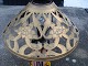 "Glasset" er dekoreret i med ule liljer og monteret på drejet træfod. Er monteret med ny ledning.