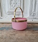 1800s candy bowl in pink opaline with brass handle.