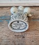 Bjørn Wiinblad Nymølle lysestage i form af engel der holder to kertelys No. 3315/474 Højde 14,5 cm.