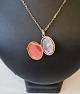 1800s medallion with 6 real pearls in long chain - 14 kt 80 cm.