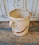 Smuk gammel lertøjskrukke med skøn cremefarvet glasur. Fremstår med glasurfejl på den ene side - se billed. Højde 18,5 cm. Diameter 16 cm.