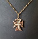 Cross with 60 cm chain in 14 kt gold. Stamp 585 Measure of the cross 21 x 35 mm. Length of the chain 60 cm. Width 2 mm.
