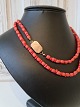 Antik lang koral halskæde med smuk bred lås i 8 kt guld.