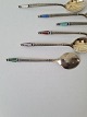 A.Michelsen set of 6 mocha spoons in gilded sterling silver with enamel Stamp: A.Michelsen - Sterling - Denmark Length 8.5 cm.
