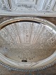Large oval silver-plated tray with handle, the tray stands on four legs. Stamped: Silver-plated - Sheffield - England