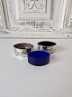 Pair of oval salt owls in silver with decoration in the art nouveau style with blue glass inserts. Stamped the three towers 1909. Dimensions 4 x 6 cm. Height 3 cm.