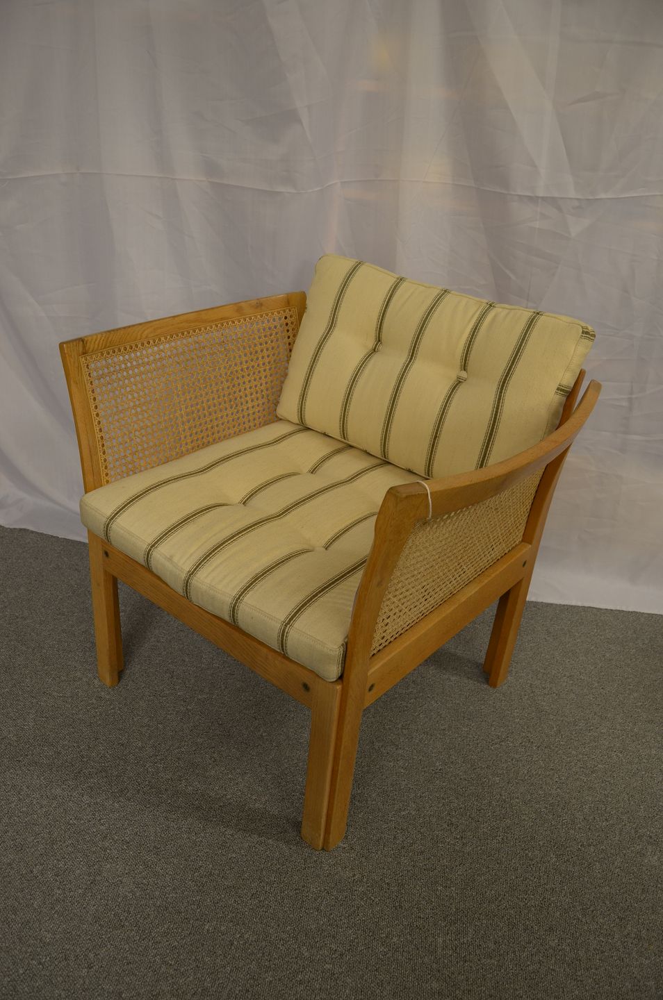 Charmerende lænestol designet af Illum Wikkelsø - model Plexus. Stolen er udformet i flet og egetræ. Den fremstår i pæn stand med intakt flet.