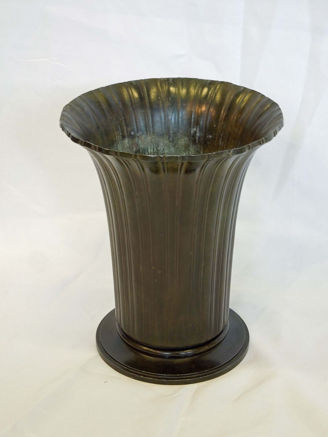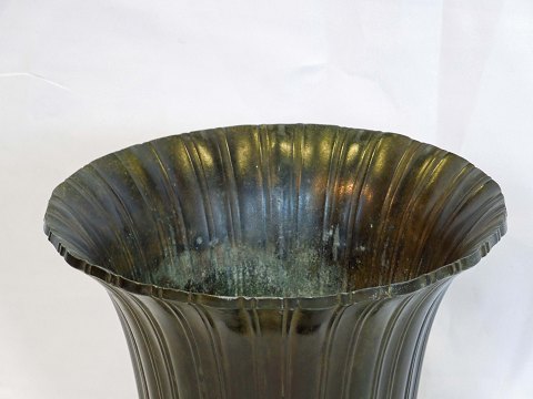 Just Andersen vase, no 1940 i patineret discometal med kanneleret udformning.