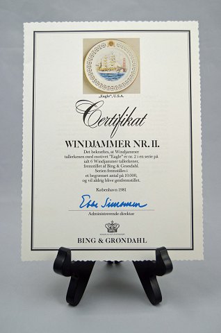 Windjammer seriens nr. 2 er motivet af skibet ‘Eagle’ fra USA. Platte nr. 8867/633. Den har en diameter på 27,5 cm. Platten er i perfekt stand, og den er klargjort til ophæng.