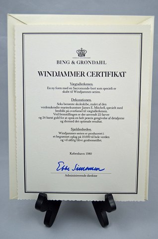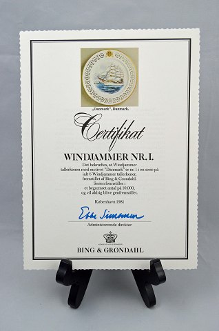 Windjammer serien fra Bing og Grøndal. Billedserien er fremstillet af den verdenskendte amerikanske marinemaler James E. Mitchell eksklusivt for Bing og Grøndal porcelæn. Motiverne udgøres af 6 skoleskibe eller Tall ships, som de også kaldes. Windjammer motiverne er specielfremstillet til at blive overført på vægtallerkner. Denne serie af fuldriggere er produceret i et begrænset antal på 10.000 eksemplar, og den vil ikke blive genfremstillet.