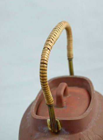 Tekanden er fremstillet i år 1950. Den er lavet af keramik og står med intakt bambusflet.