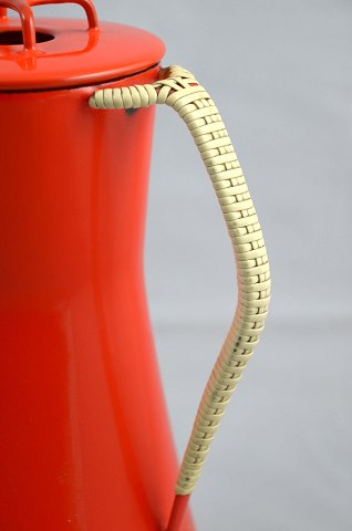 Kanden er fra 1950érne og fremstillet i emaljeret jern. Den står med intakt plastflet. Kanden er i pæn stand.