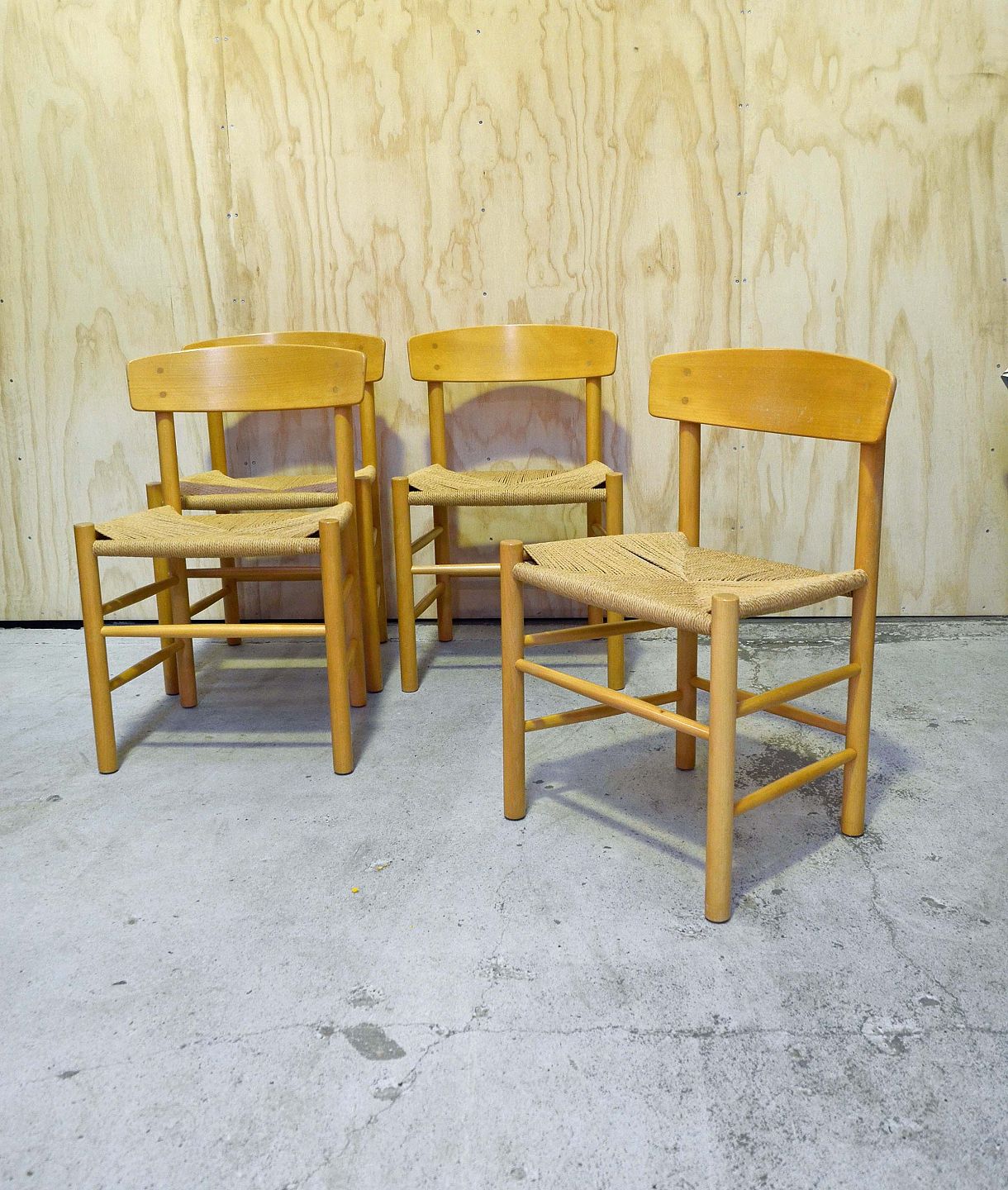 Børge Mogensen Folkestol (model J 39) i lakeret bøg med garnflet. Stolene er i meget pæn stand med flot garnflet.