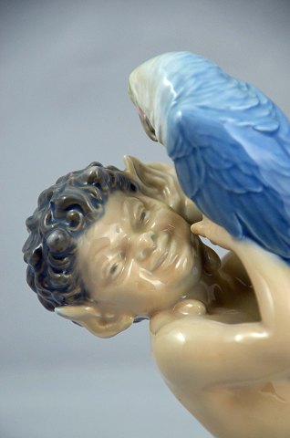 Kgl. figur "Faun med papegøje" nr. 752 af Chr. Thomsen for Royal Copenhagen, Denmark.