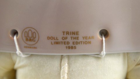 Årsdukke. Porcelænsdukke på stativ - Trine, Doll of the year 1985, Limited edition fra Bing og Grøndahl.