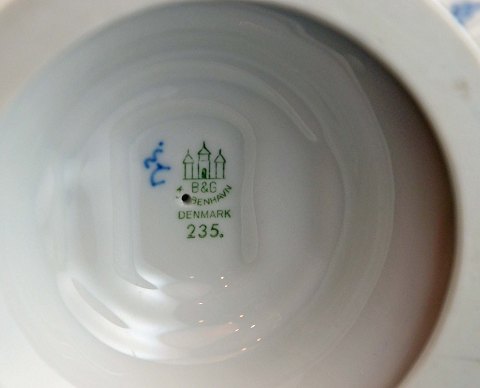 To armet lysestage (nr. 235) i musselmalet; blåmalet skelform fra B&G. Bing og Grøndahl stagen er 1. sort. og i meget pæn stand. Lysestagen er produceret i perioden 1948-1952. H: 13,5 cm. B: 20,5 cm.
