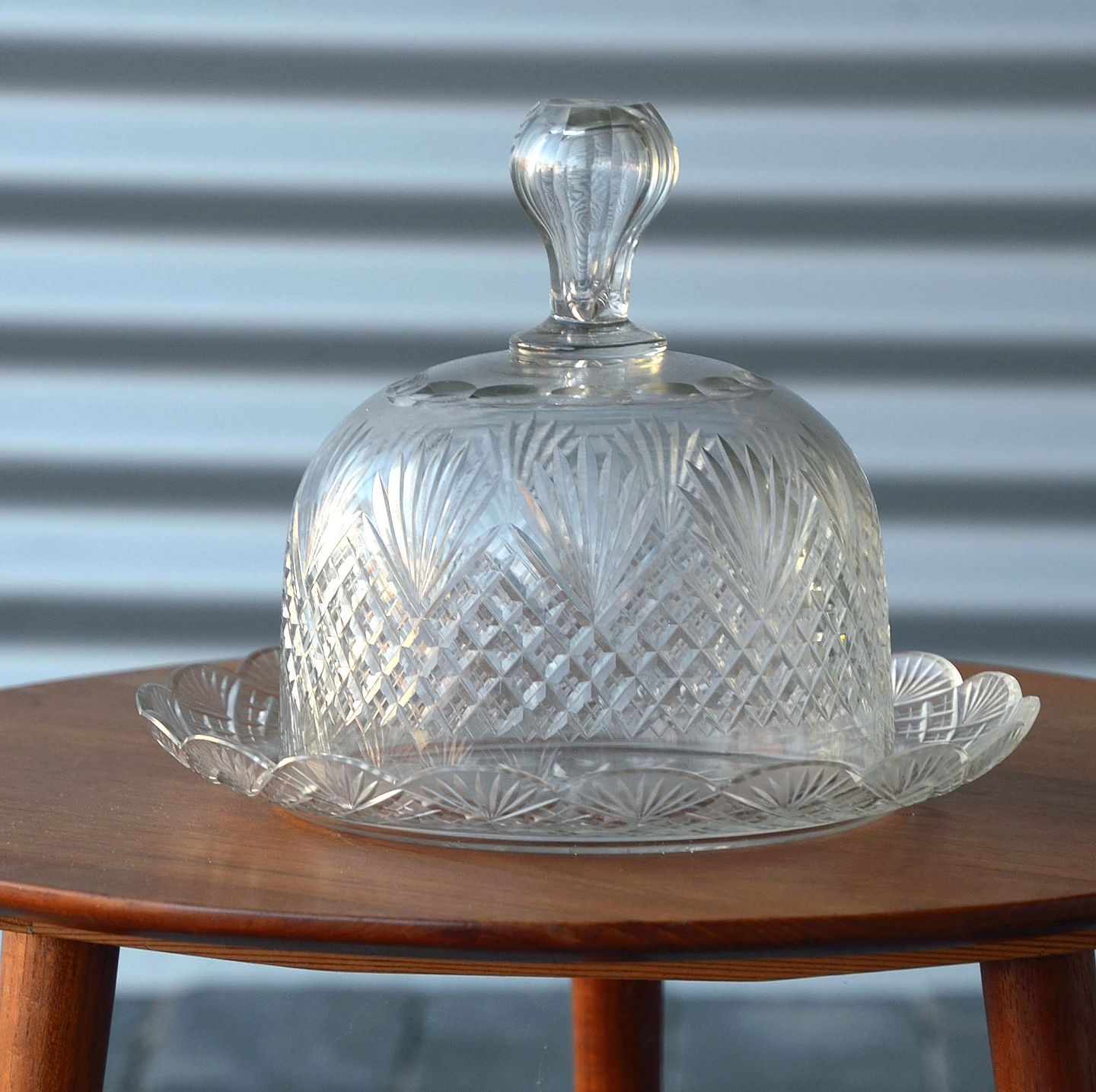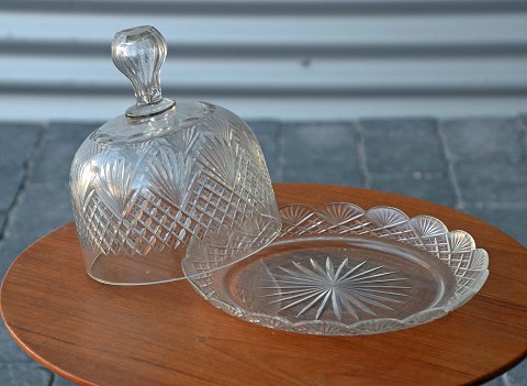 Osteklokke i facetteret glas. Den er i meget pæn stand uden skår. H: 18 cm. Ø: 23,5 cm.