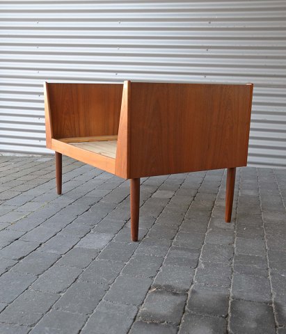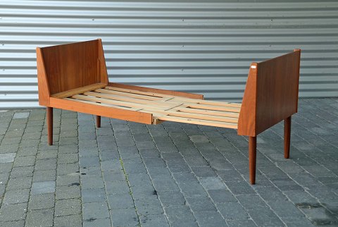 Udtrækseng. Børne- og gæsteseng i teaktræ med ekstra ben. Sengen er i pæn stand.