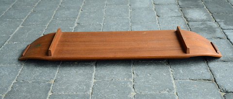 Bordfad i teaktræ. Fadet er i pæn stand og mærket "Håndarbejde".
