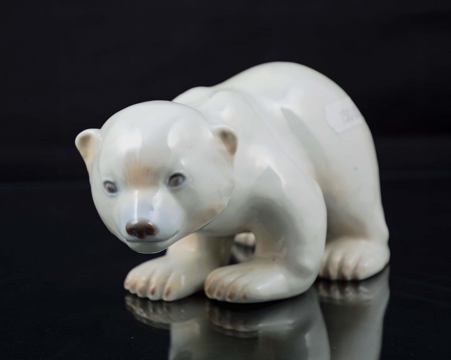 Figur af Isbjørne unge(nr. 2535) fra Bing og Grøndahl. Figuren er i meget pæn stand. H: 8,5 cm. L: 18 cm. Der er 4 forskellige figurer i denne serie. Figurerne findes også i kongelig udgave.