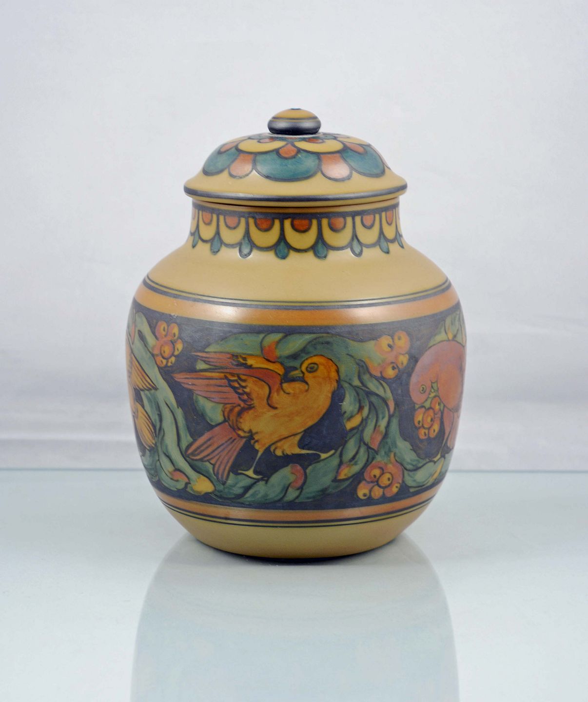 Lågkrukke i keramik (nr. 2.1) fra L. Hjorth. Krukken er i pæn stand.