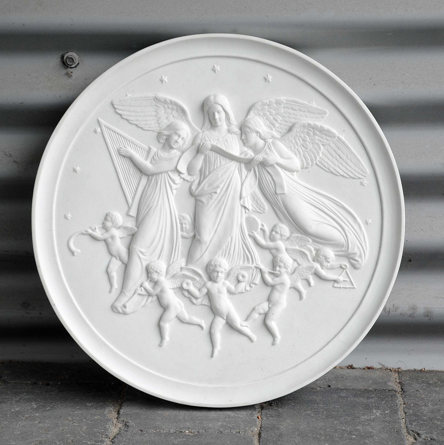 Juleglæde i himlen af Bertel Thorvaldsen. Kongeligt relief i bisquit. År ca. 1880. Enkelte ridser i kanten. intakt. Meget pæn stand.