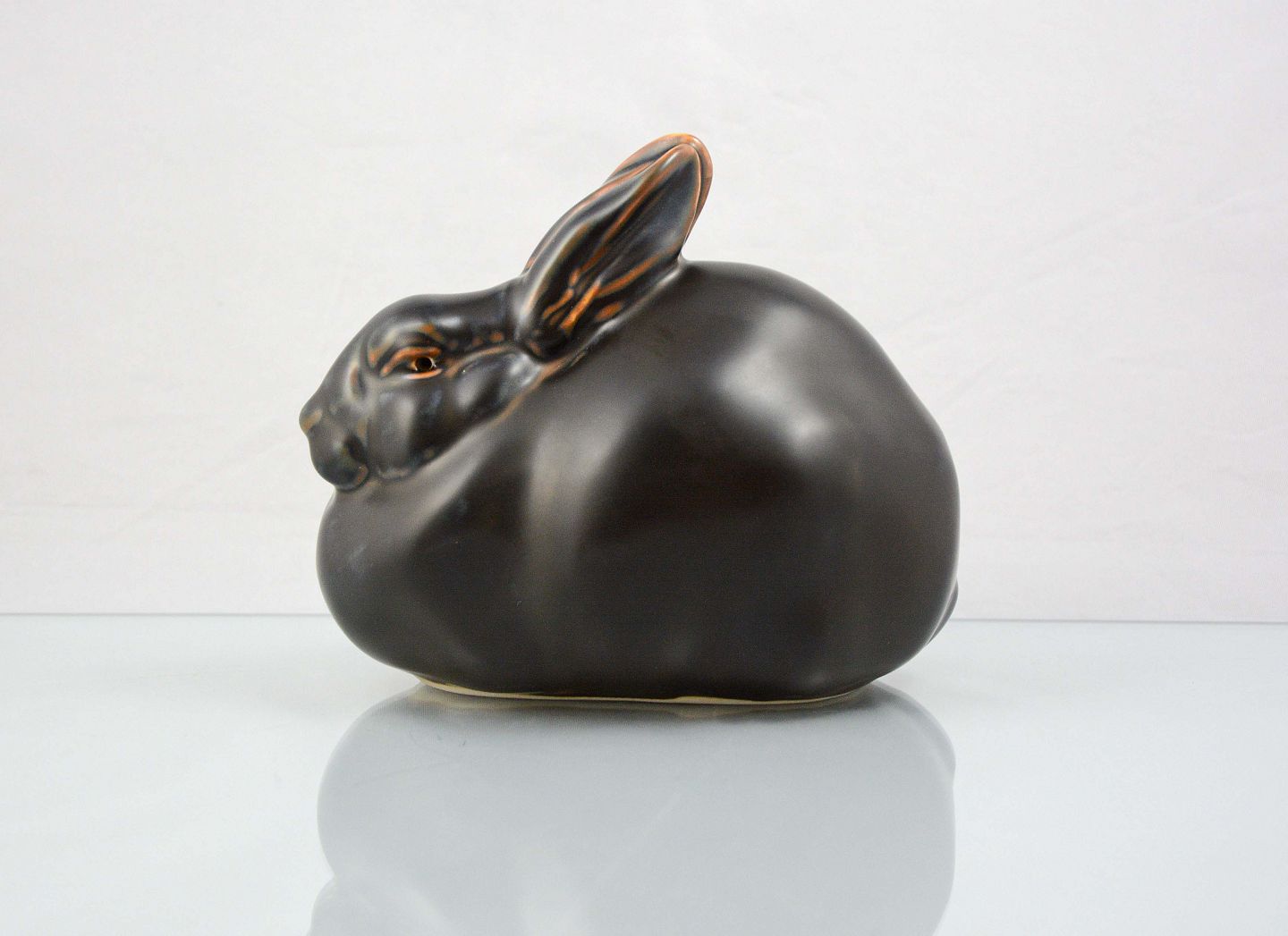 Kanin (nr. 22695) i stentøj af Jeanne Grut for Royal Copenhagen. 1. sort. Perfekt stand.