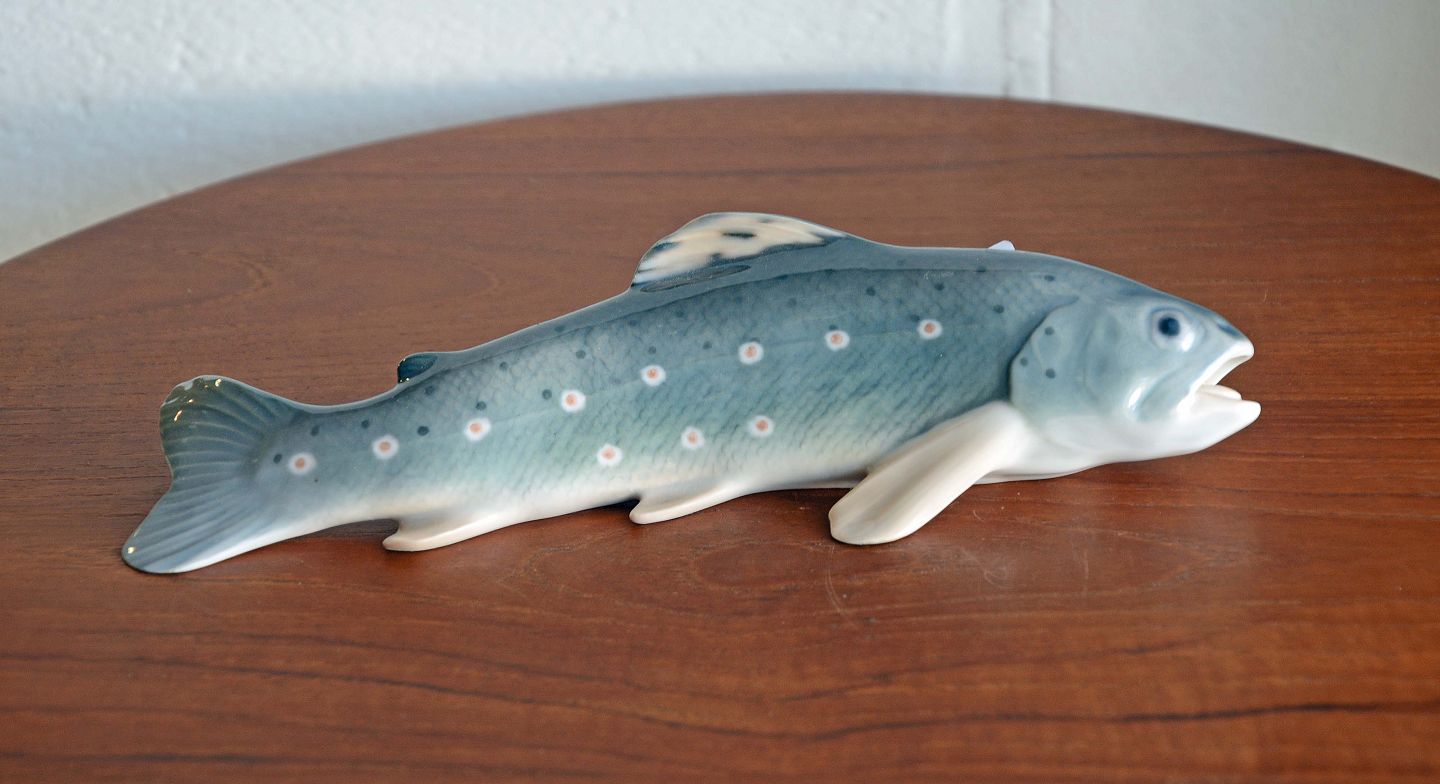 Fisk(nr. 1803) figur af Dahl Jensen for Bing og Grøndahl. 2. sort. Forel også kaldet ørred er i meget pæn stand.