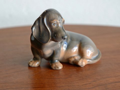 Siddende gravhund (nr. 3140) af Th. Madsen for Royal Copenhagen.