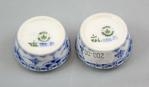 2 stk. saltkar i kuvertstørrelse i halvblonde musselmalet fra Royal Copenhagen. 1. sort. Meget pæn stand.