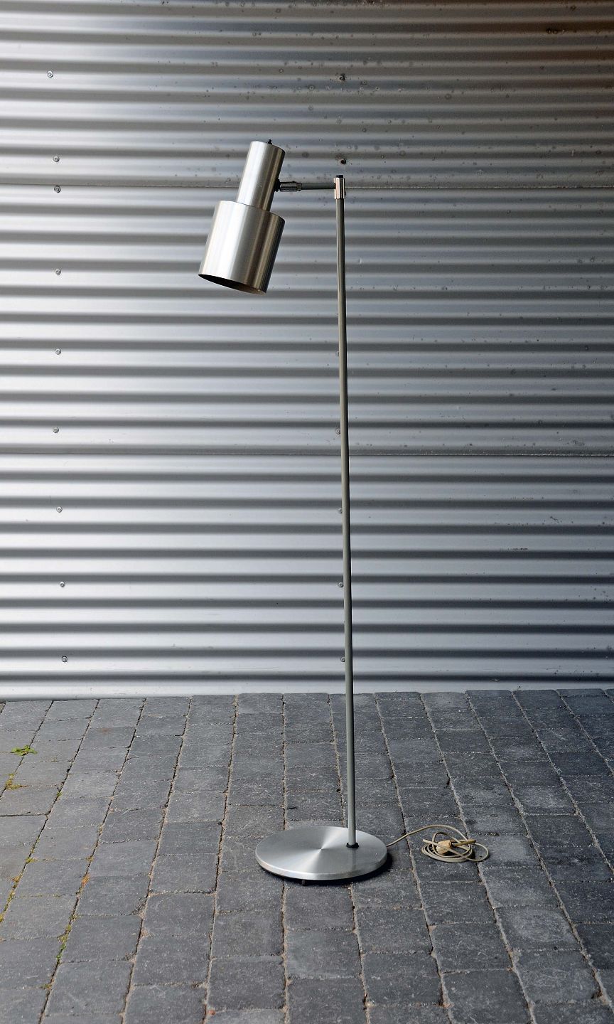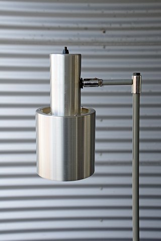 Standerlampe model Studio af Jo Hammerborg for Fog & Mørup. Stamme i grålakeret stål og skærm af aluminium. lidt brugsbord ellers i pæn stand.