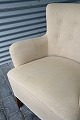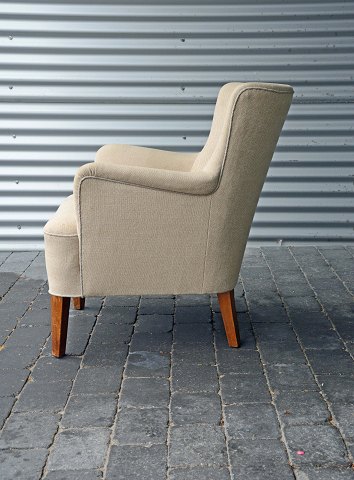 Lænestol model 1748 af Peter Hvidt for Fritz Hansen. Betrukket med stof. Aldersrelaterede brugsspor. Pæn stand.solgt