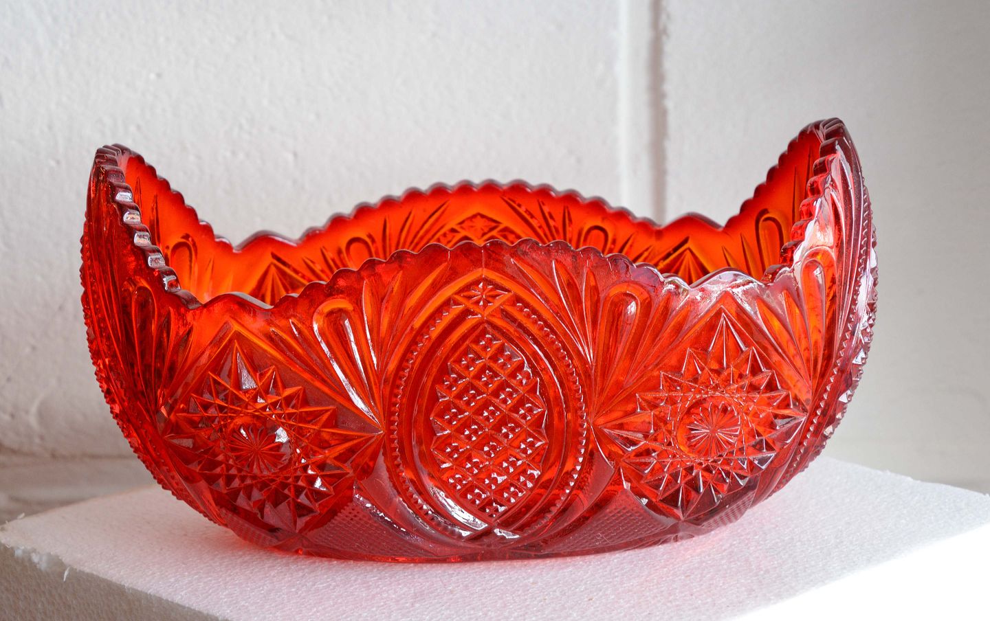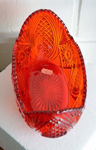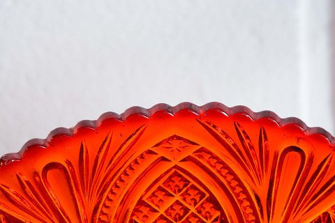 Rubinrød jardinierer skål af presset glas fra Fyns glasværk år 1924.