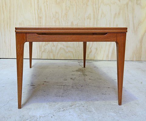 Spisebord i teaktræ med 2 stk. tillægsplader. Enkelte brugsspor. Pæn stand.