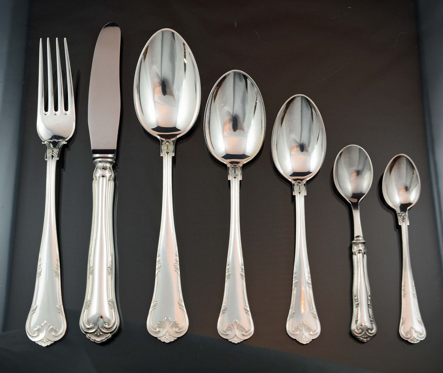 Herregårdsmønster bestik i tretårnet sølv. Pæn stand.