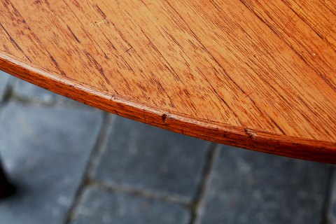 Sofabord i teaktræ af Poul Volther for Frem Røjle. Fremstår med brugsspor. Bordet kan stå i halvmåne form.