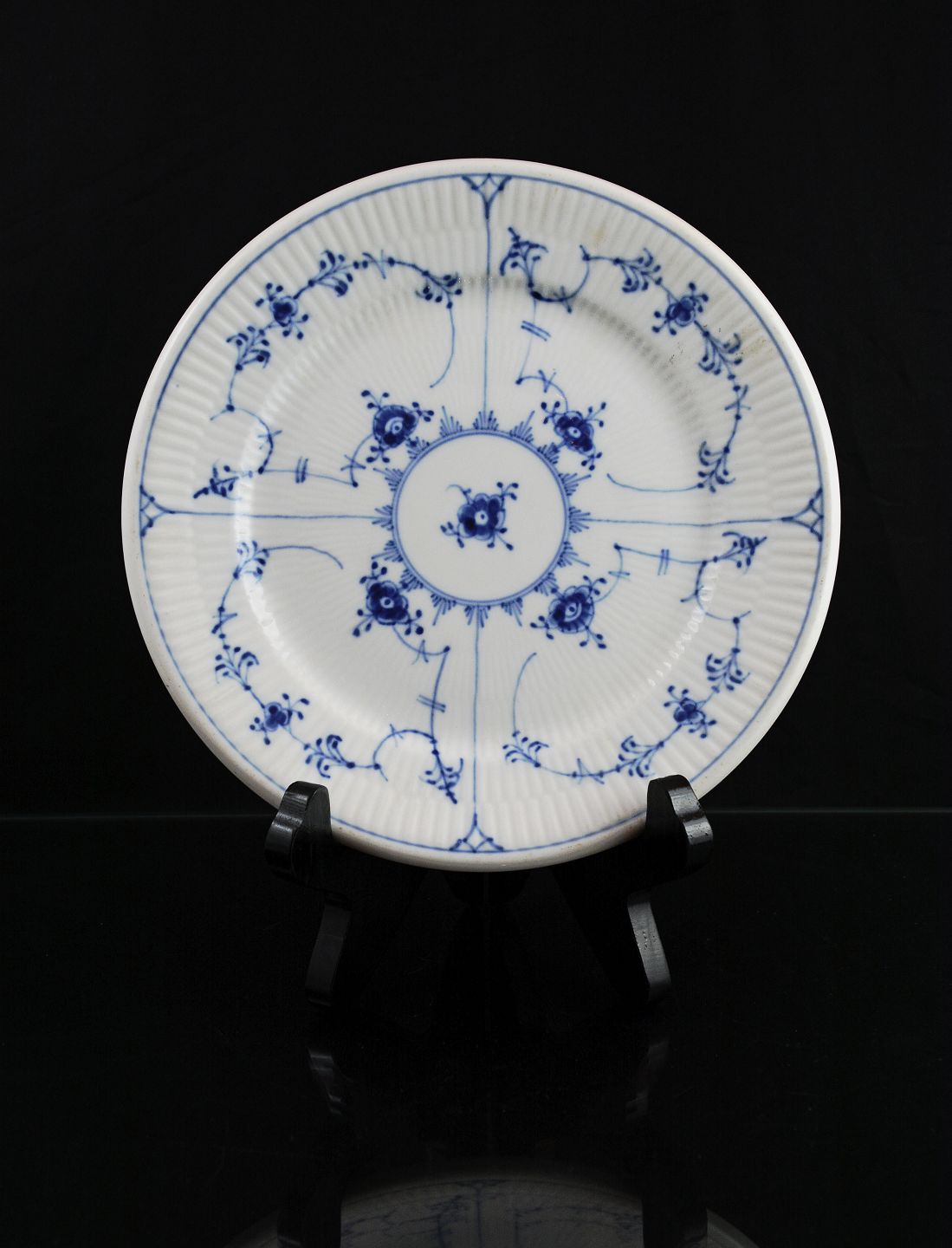 Kgl. desserttallerken (nr. 1/330) musselmalet riflet fra Royal Copenhagen. Hotelporcelæn.