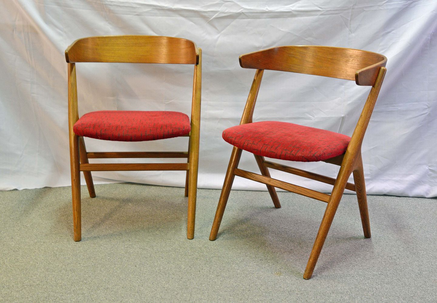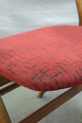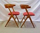 To Stole i teaktræ med rødt stofpostret sæde designet af Helge Sibast. Intakt med enkelte brugsspor.