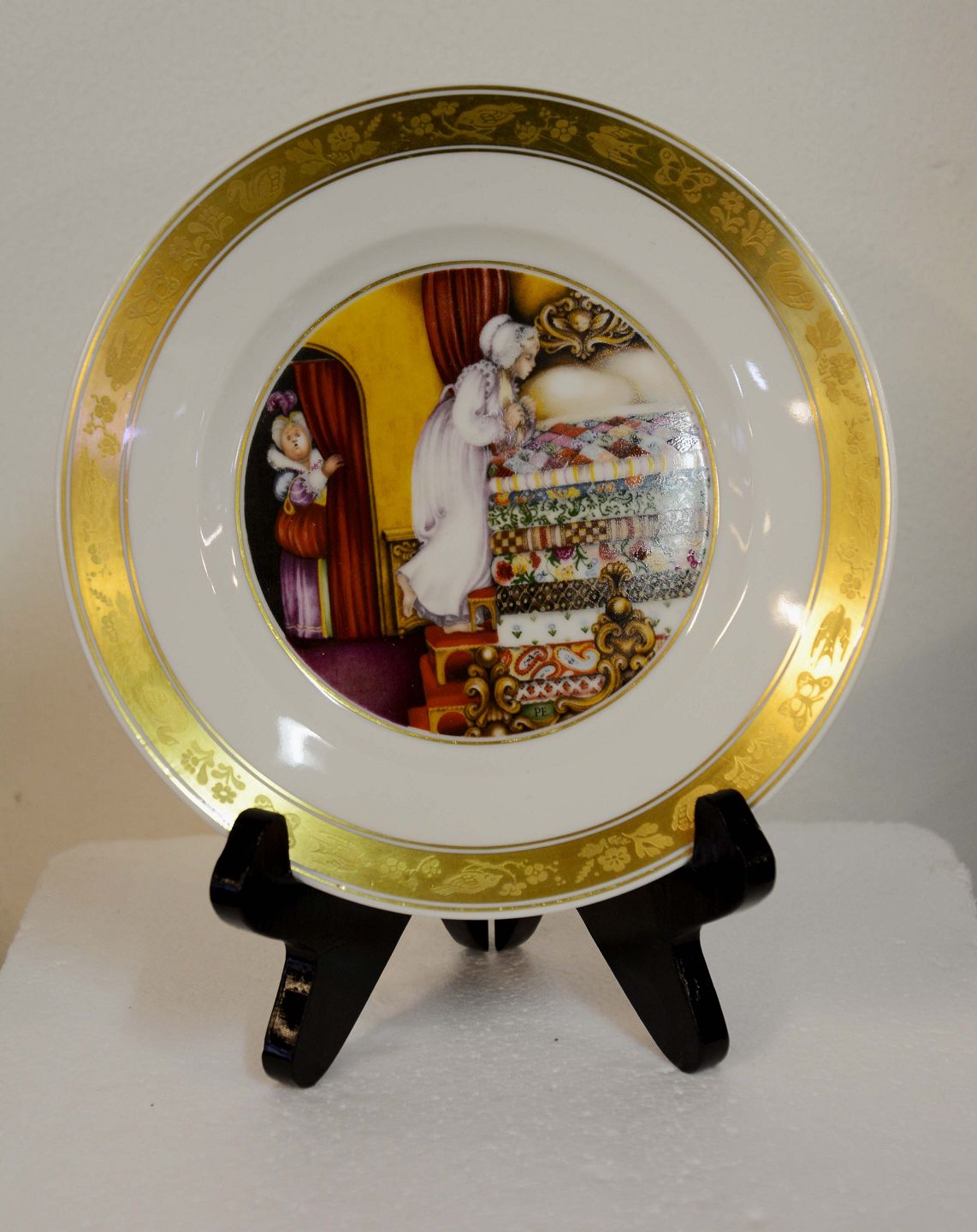 Royal plates. ”The princess and the pea” The Hans Christian Andersen Plates by Pauline Ellison, 1975 for Royal Copenhagen, Denmark. Intact. 1.sort.