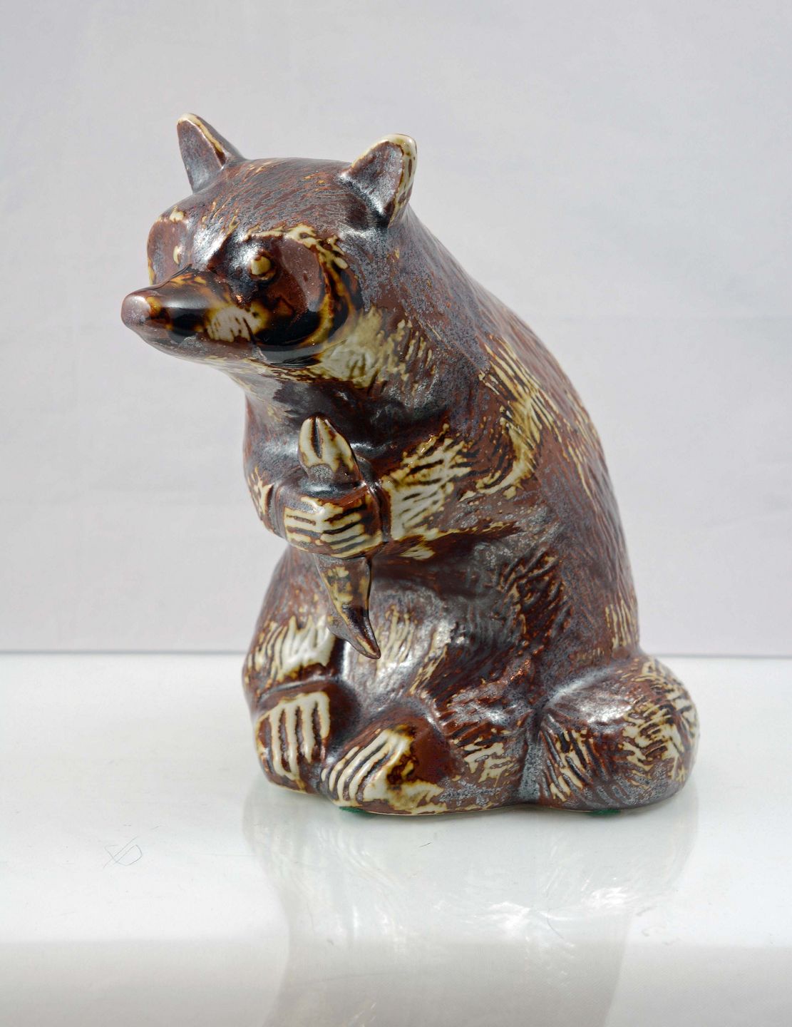 Vaskebjørn i stentøj figur designet af Haico Nitzsehe for Søholm Keramik, Bornholm. Mærket "JPS 1954 -1. maj-1979".