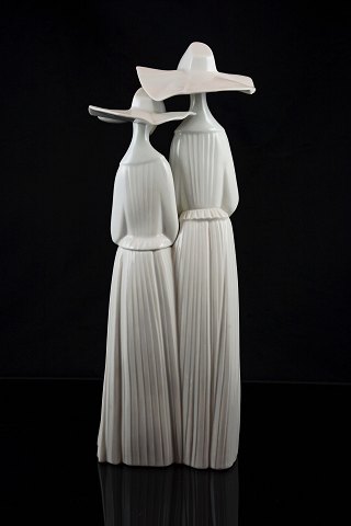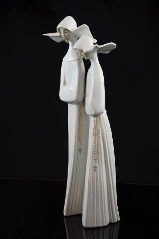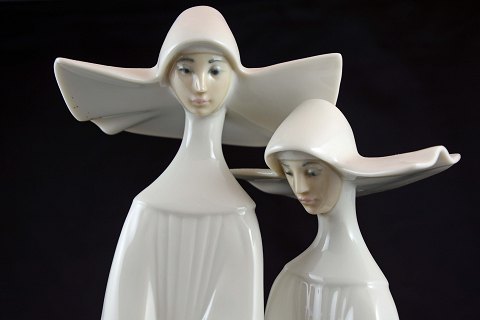 Porcelænsfigur af to Nonner fra Llandro, Spanien. Signeret D-13M. Intakt.