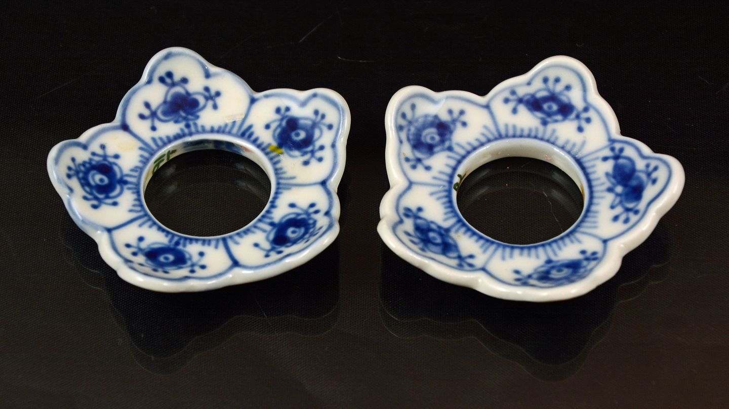 To stykker kongelige musselmalet riflet lysmanchetter (nr.1/16) fra Royal Copenhagen. 1. sortering
