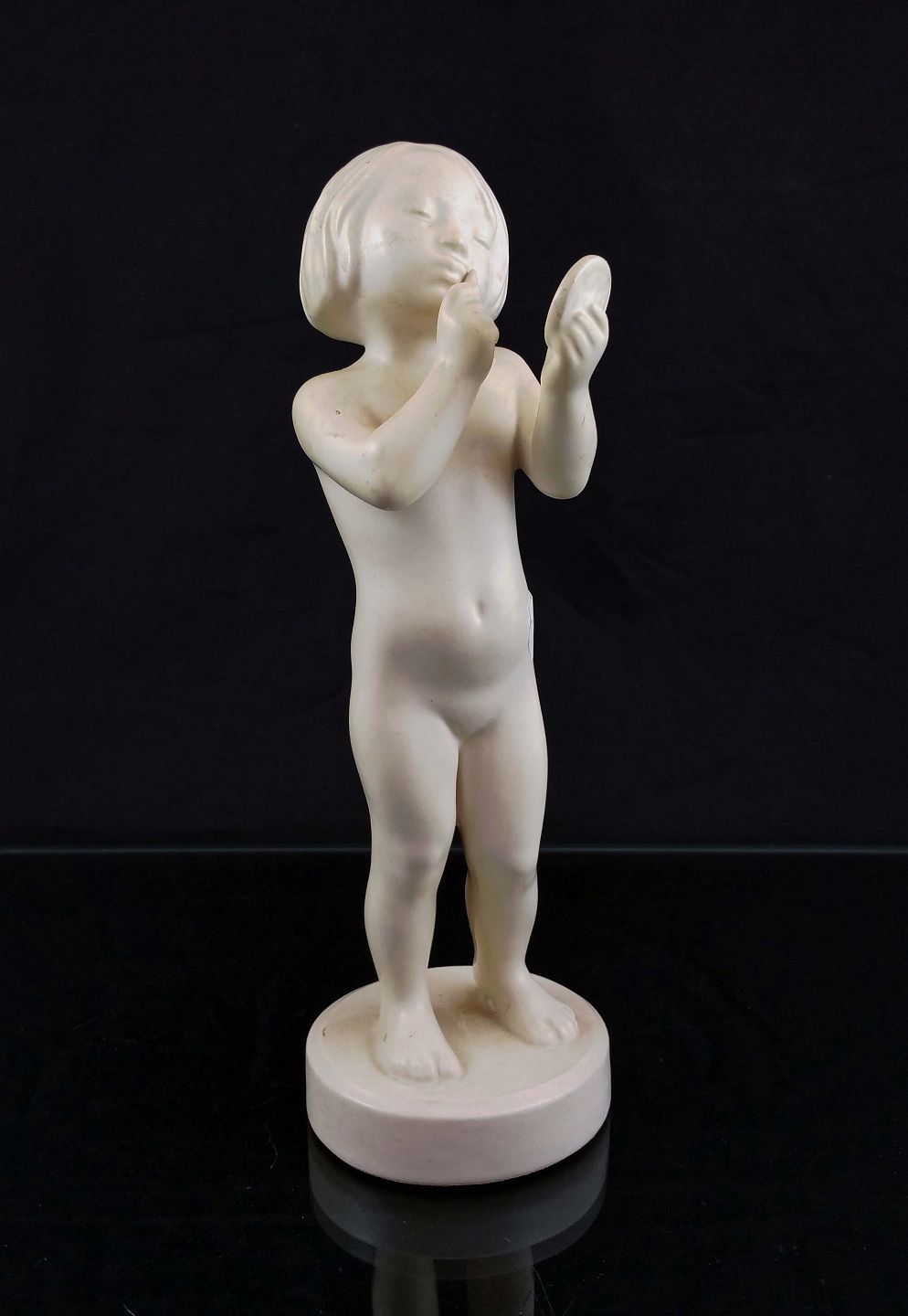 Ipsen Enke: Pige med spejl (nr. 933) i keramik af Kai Nielsen. Stemplet. Intakt med brugsspor.