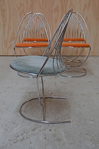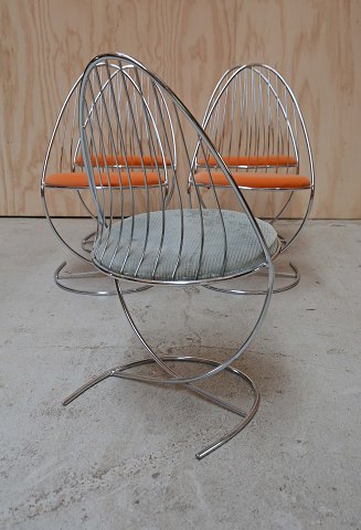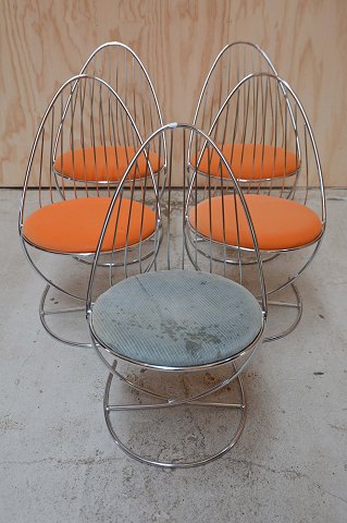 Et sæt på fem svenske Dahlens Dalum stole i chrome/krom. Tidligere solgt i Bloomingdales i 1960érne, og modellen er også anvendt i den britiske tv-serie "Doctor Who".